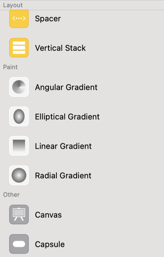 - Capsule: A capsule shape aligned inside the frame of the view containing it rounded rectangle의 일종으로, corner radius가 직사각형의 가장 작은 모서리의 길이의 반이라고 한다.